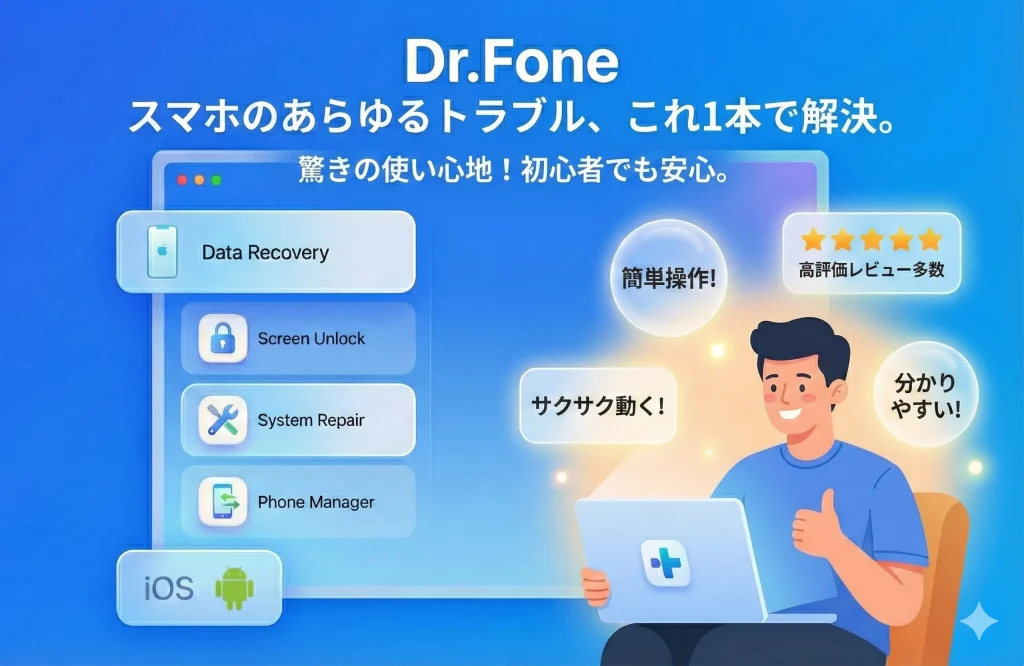 「Dr.Foneを本当に使っても大丈夫?」という不安を解消するため、様々なソフトを使ってきた僕が、安全性と使用感をお伝えします。