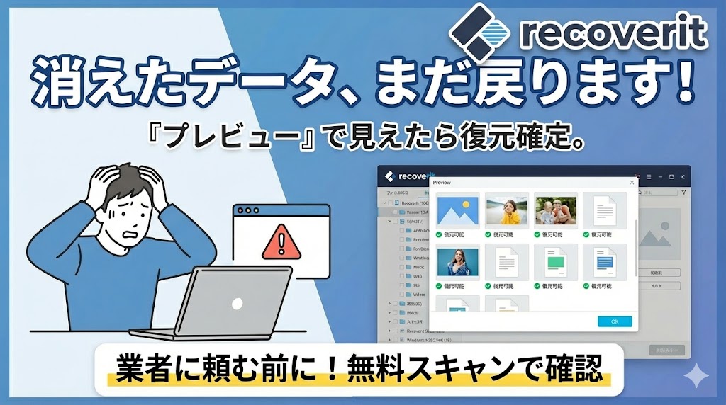 Recoverit 消えたデータを復元!パソコン初心者でもデータ救出