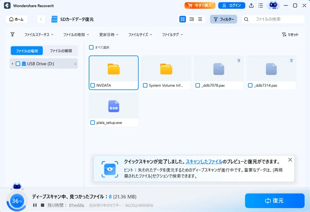 削除されたファイルをスキャンして画面上でプレビューできるだけでも、Recoveritの性能を十分に確認できます。
